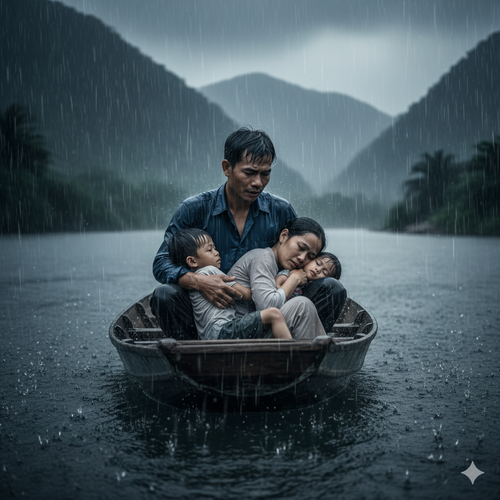 Em ơi vợ chồng nào chẳng có lúc cơm không lành, canh chẳng ngọt, sao em lại ôm 2 con b:ỏ đi giữa trời mưa như thế!
