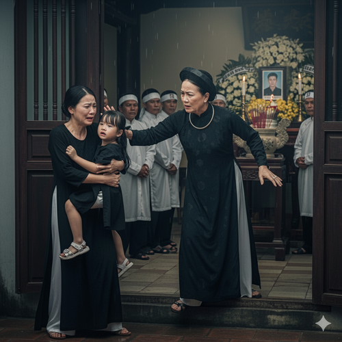 Ngay giữa đ/ám ta/ng con trai, mẹ chồng đu//ổi con dâu và cháu gái ra khỏi nhà vì s/ợ g/ánh