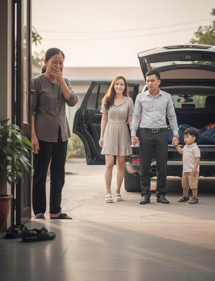 Chiếc ô tô bóng loáng dừng trước cổng nhà. Hạnh đang tưới cây, chưa kịp hiểu chuyện gì thì cánh cửa mở ra. Dũng bước xuống, mặc sơ mi là phẳng, gương mặt không chút biểu cảm. Bên cạnh anh là một cô gái trẻ, váy ngắn, giày cao gót, son đỏ chót. Trên tay cô ta là một đứa bé bụ bẫm, khoảng hơn một tuổi.
