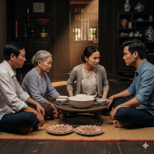 Ly ôm tấm ảnh, nghèn nghẹn. Cô bước tới, cúi xuống, đặt mặt trên mu bàn tay nhăn của bà Tư. “Con… xin lỗi mẹ vì buổi trưa con nóng. Con nghĩ lệch. Con quên mất, nhiều khi cái ít ỏi không phải là khinh rẻ, mà là phần người ta gom hết lại để dồn cho mình.”