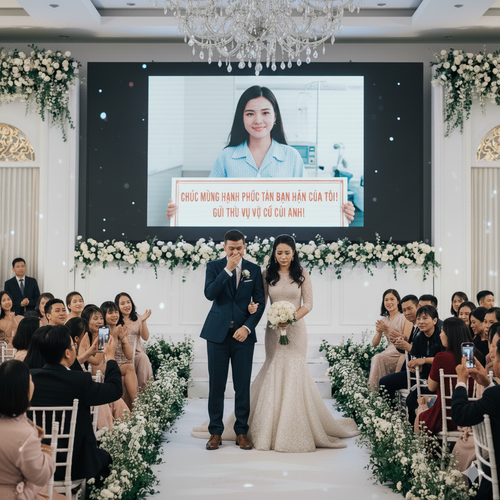 Tôi bật khóc nức nở ngay giữa hôn trường. Tiếng nấc của tôi khiến nhiều người rưng rưng theo. Mai đứng bên cạnh, mặt tái nhợt, đôi mắt đỏ hoe. Cô biết tất cả, nhưng im lặng làm tròn lời hứa với bạn thân.