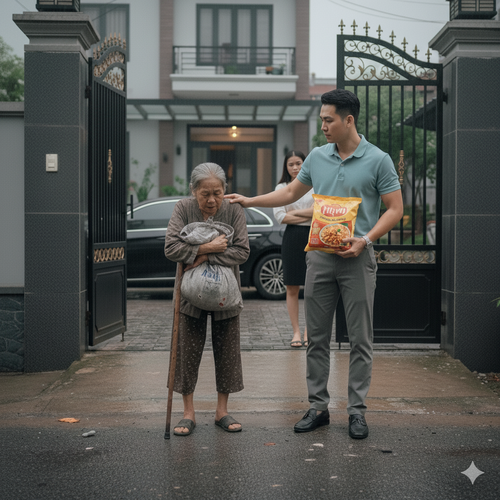 Trên đường về, bà không trách con. Bà tự nhủ: “Chắc con thật sự khó khăn. Dù sao nó cũng cho mình bịch mì, coi như tấm lòng.”