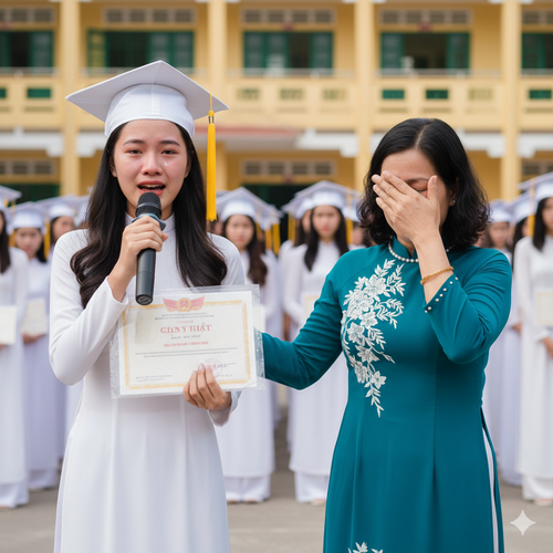 Mẹ nhặt v/e ch/ai, cha không có, n/ữ si/nh bị bạn bè x//a lá//nh suốt 12 năm học, ngày nhận bằng khen, em đã phát biểu một câu khiến cả trường chìm trong nước mắt…
