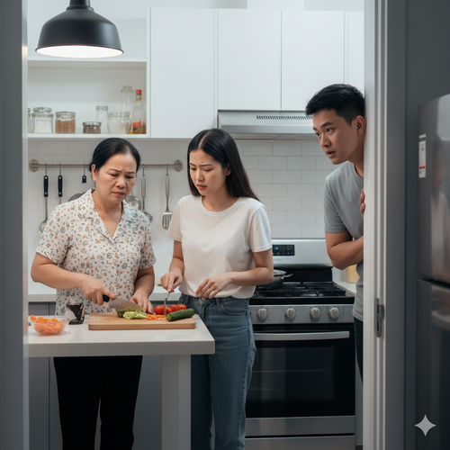 “Để đó cho má giùm em,” Hà đáp nhanh. “Em về trưa nay, anh ấy ở nhà. Đừng chuyển gì về nhà.”